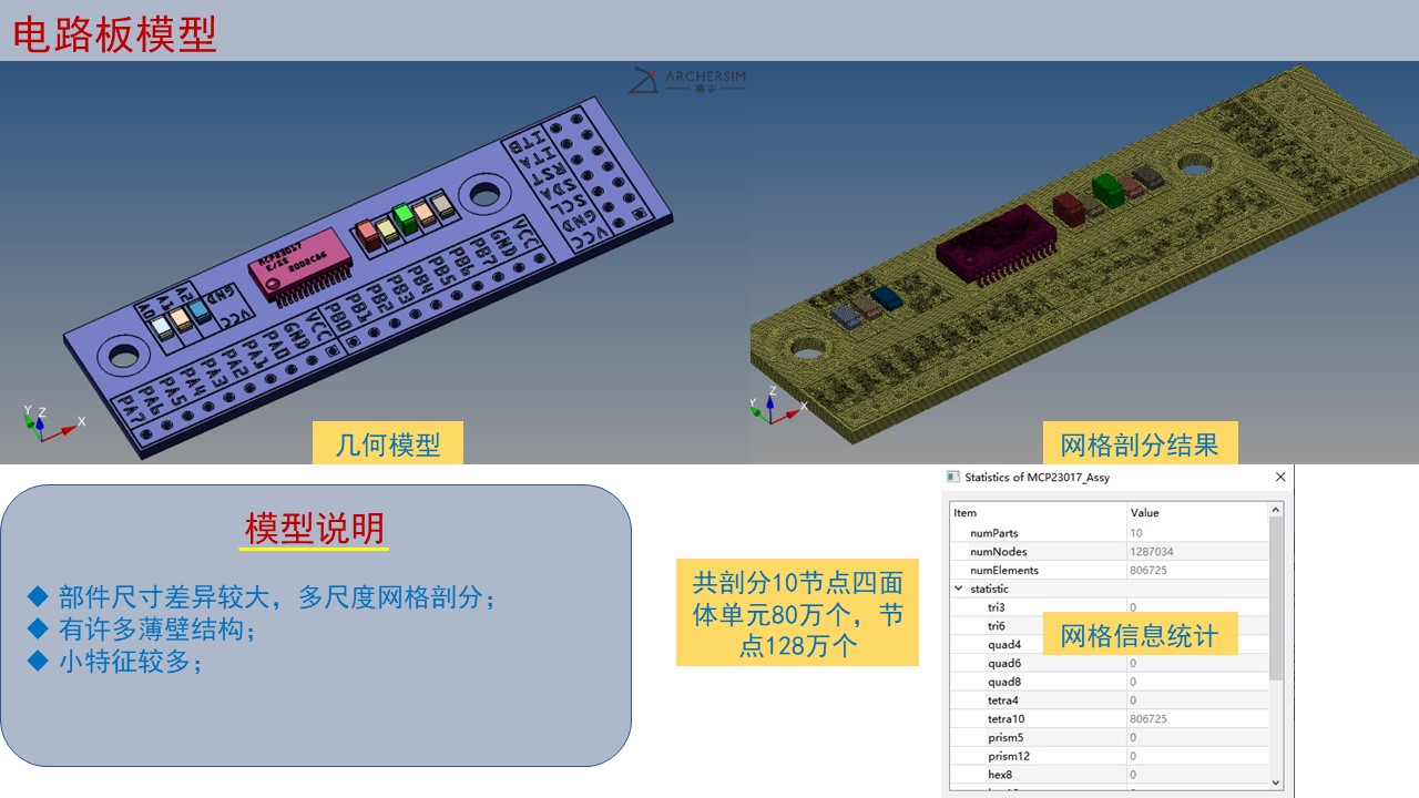 模型说明 部件尺寸差异较大,多尺度网格剖分; 有许多薄壁结构; 小特征较多;...